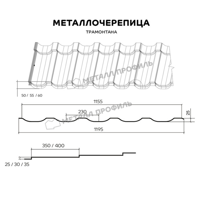 Металлочерепица Металл-Профиль Трамонтана-M 0,5 NormanMP RAL 6005 Зеленый мох Показать информацию