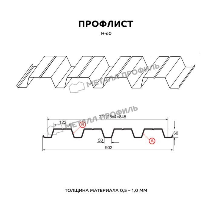 Профлист Металл-Профиль Н-60 Полиэстер 0.7 мм RAL 5015 Синее небо